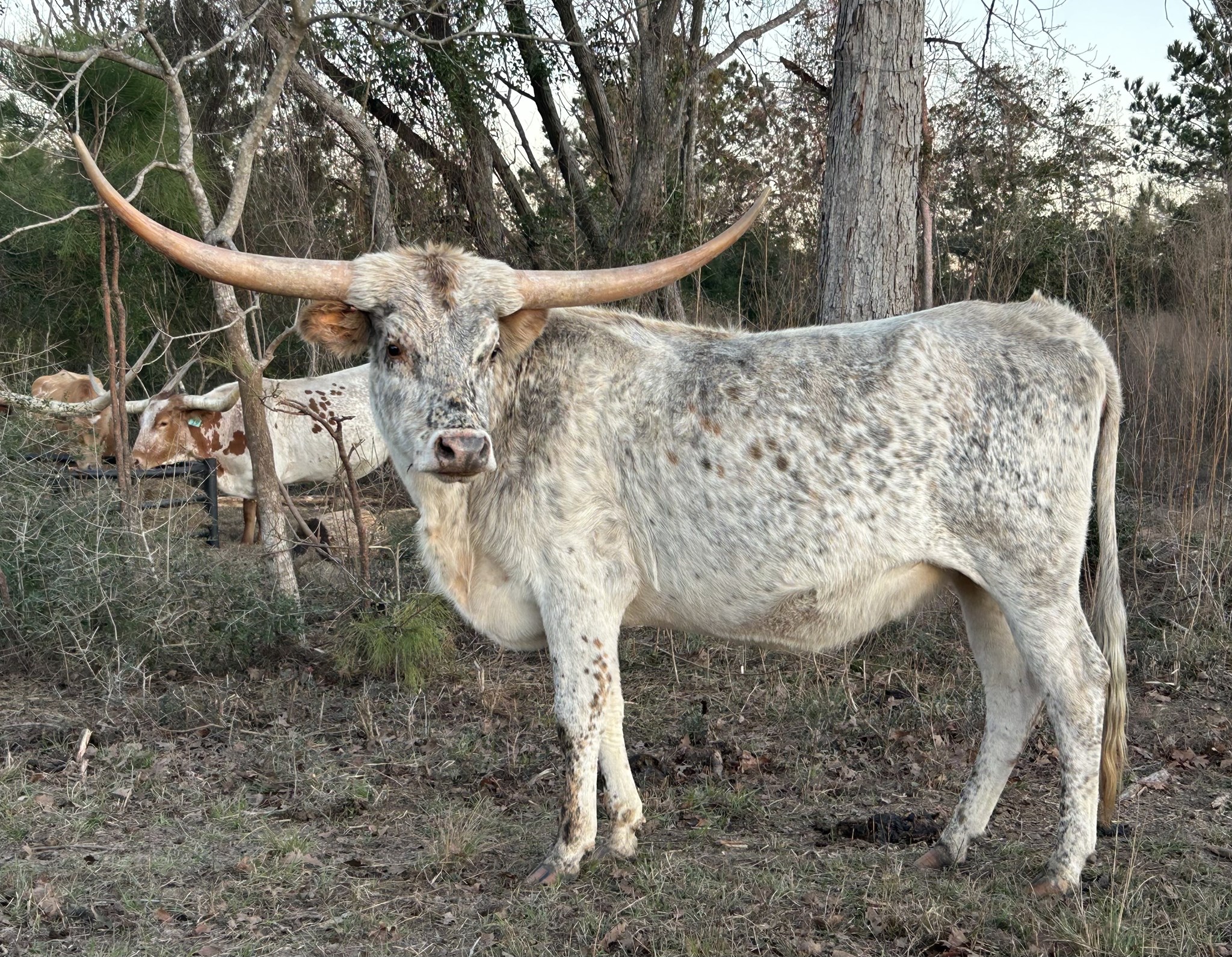 Silent Plan bull calf at side born 3/23/26. Exposed back to Braveheart since calving.